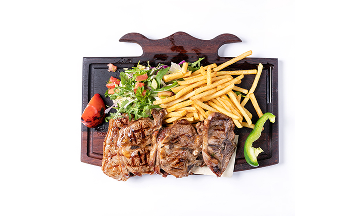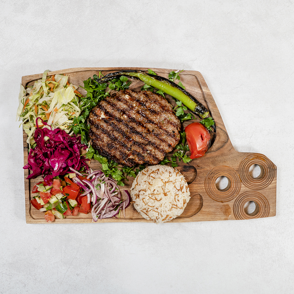 Grillowany kotlet z mięsa jagnięco-wołowego z tureckim żółtym serem Grilled lamb-beef cutlet with Turkish cheese